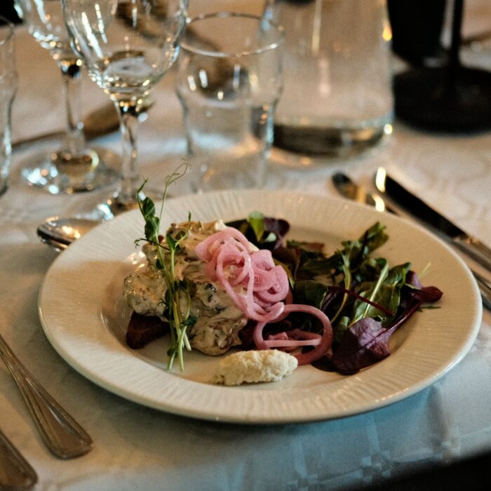Vi erbjuder helhetslösningar med mat, dryck och personal. Vår kökschef hjälper er att ta fram en utsökt meny som anpassas efter era specifika önskemål.